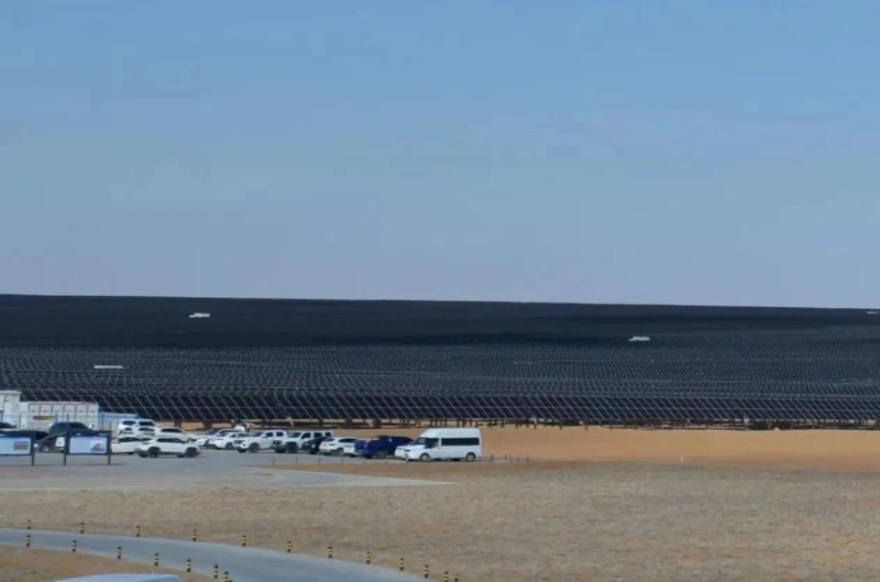 阿拉善地处大漠戈壁腹地,艰苦的环境造就了当地各族人民如同胡杨一样坚韧不拔的精神。采访团走进腾格里沙漠时,瞬间被沙漠中如同“蓝色海洋”般的光伏板吸引,成片的光伏板如同给沙漠披上了一层外衣。防沙治沙和风电光伏一体化工程,通过“板上发电、板下修复、板间种植”的方式,在治理沙地的同时促进节能降耗,实现能源开发利用与生态环境协调发展。